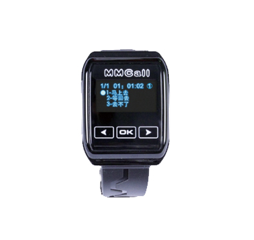 更薄的手表机,可充电、3行中文显示,双向通讯、实现柜员与被叫人互联互通,方便协调,避免让客户等待;